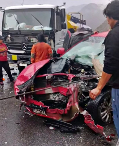 Un violento accidente de carretera se produjo tras el choque frontal entre un automóvil y una camión cisterna, el conductor del automóvil resulto herido atrapado entre los fierros retorcidos de su vehículo. El grave accidente se registró al promediar las 6:00 p. m. de la tarde de hoy, lunes 05 de enero, en el Valle Fortaleza, distrito de Antonio Raymondi – Raquia en la provincia de Bolognesi. La zona del siniestro es conocida como la subida de «Cabra Cuta».