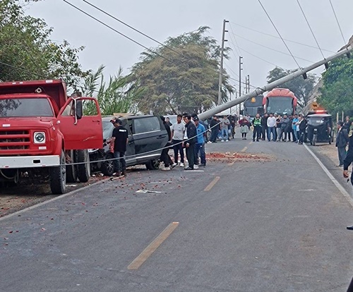Un accidente de tránsito se registró la madrugada de hoy, cuando una camioneta que trasladaba cajas de fresa chocó violentamente contra un poste de alumbrado eléctrico, resultando personas heridas. El hecho ocurrió la altura del km 01+600 de la carretera de penetración Casma–Huaraz.