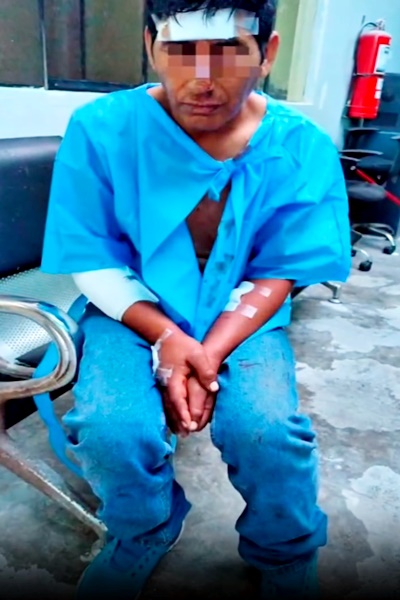 Los efectivos policiales actuaron con cautela esperando el momento para arrebatarle el arma blanca. Tras ser detenido fue llevado al hospital de Casma, donde el médico de turno diagnosticó heridas múltiples cortantes. Luego fue llevado a la comisaría y se comunicó su detención al fiscal penal de turno del Ministerio Público de Casma y horas después recuperó su libertad.