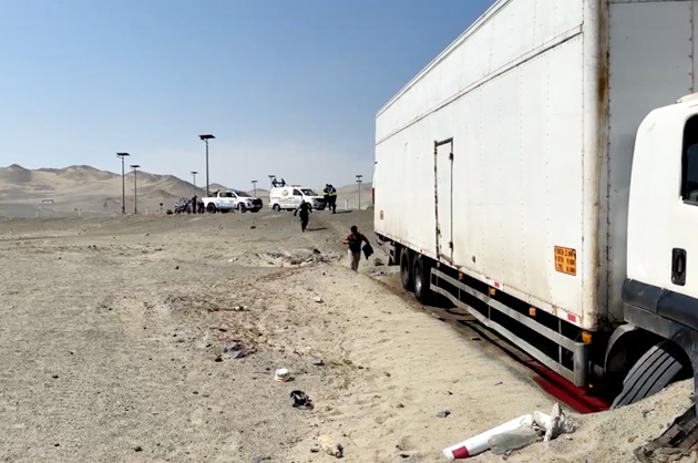 Un aparatoso accidente vial tuvo lugar esta mañana en el conocido Óvalo de la Muerte de Tortugas, cuando un tráiler que transportaba sandías perdió el control y terminó al costado de la Panamericana Norte, a la altura del ingreso al balneario Tortugas, provincia de Casma.