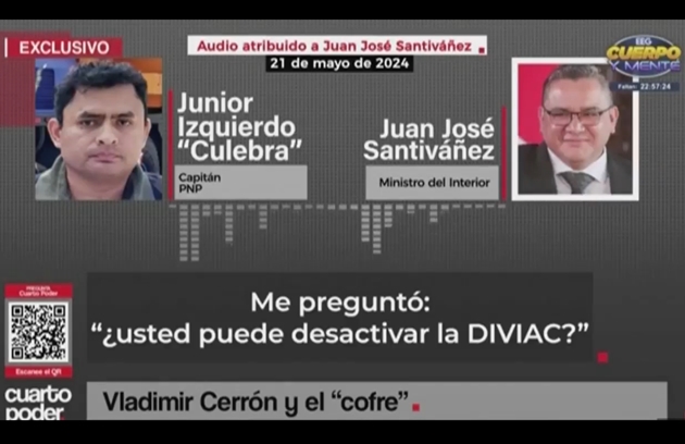 Este audio, que hoy Santiváñez niega, fue grabado, según ‘Culebra’, el 21 de mayo de 2024, cinco días después de que se pusiera el fajín de ministro a cambio de tumbarse la Diviac, como revelamos el domingo pasado.