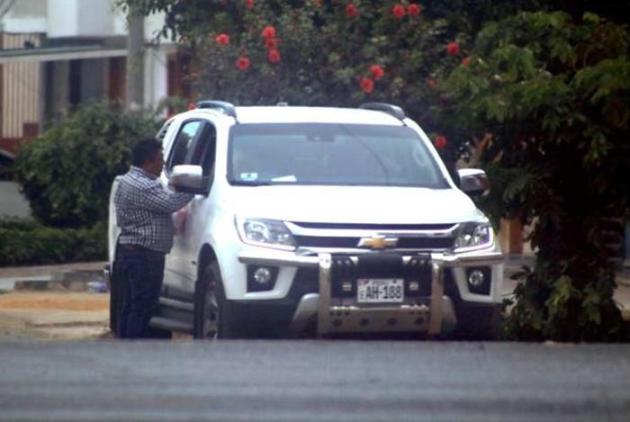 Las fotografías lo muestran abordando la camioneta edil y sentándose en el asiento del copiloto. Delante de la camioneta aparece un auto Kia, de color rojo, de placa T3K-152, del cual desciende una persona que se acerca a hablar con el alcalde. Según el registro de la Sunarp, dicho auto es de propiedad de Arnaldo Julio Cancha Luna y Jeannet Ofelia Osorio Rodríguez.