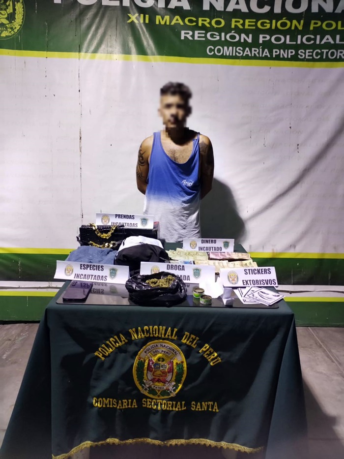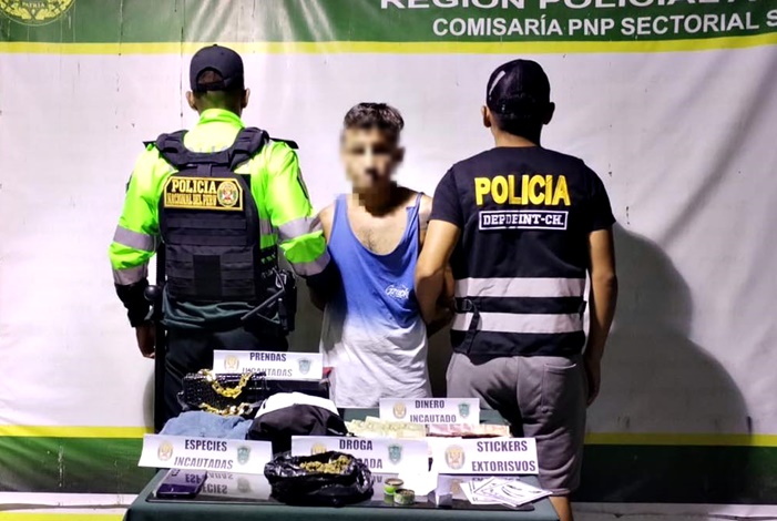El detenido fue identificado como Stefan Jhosimar Vega Burga (32), alias “Tayo”. Durante el registro personal, se le encontró 170 gramos de una sustancia con características similares a cannabis sativa (marihuana) ocultos en su vestimenta, además de un celular Samsung Galaxy A15.