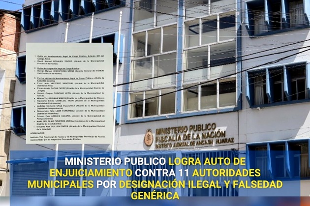 El Ministerio Público, a través de la Tercera Fiscalía Provincial Penal Corporativa de Huaraz, a cargo del Fiscal Renato Sulmer Arapa Diaz, ha logrado un avance significativo en la lucha contra la corrupción al lograr que el juez del caso emita el Auto de Enjuiciamiento para que las 11 autoridades municipales y un funcionario, vayan a la etapa de Juicio Oral.