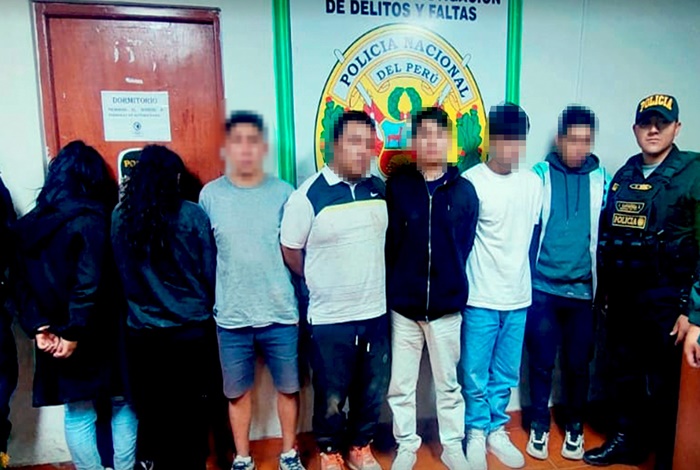 Los detenidos fueron identificados como Samir Medina Amancio (21), Ángel Arquinigo Espinoza (22), Jimmy Huamán Morán (27), Junior Patricio Medina (30), Jhon Picón Araucano (30), Diana Durán Serpa (20) y la adolescente F.Y.S.C. de 17 años.