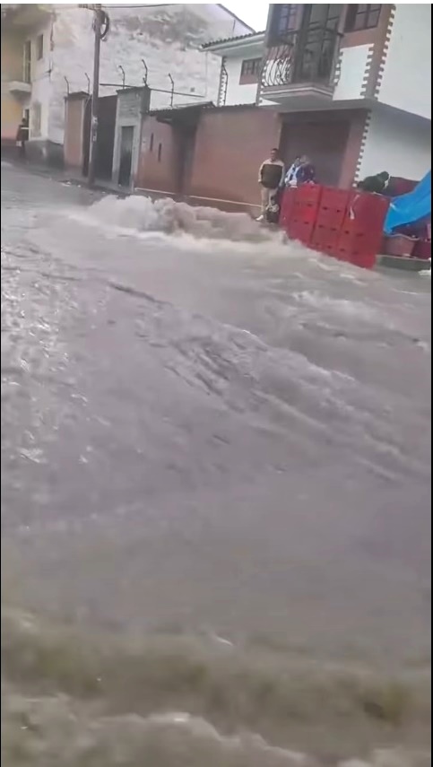 Las intensas lluvias registradas esta tarde en Huaraz provocaron el colapso del desagüe del barrio San Francisco, generando un aniego de aguas servidas que afecta a vecinos, comerciantes y el tránsito vehicular.