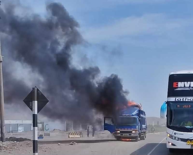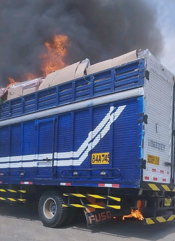 Según se conoció, el camión Mitsubishi azul de placa B4A – 745, cuando el conductor transitaba en sentido sur a norte cargado con mercadería de mueblería en general, se percató que de la carrocería empezó salir humo espeso y fuego, inmediatamente se estacionó a un costado de la vía y llamó al cuerpo de bomberos pero lamentablemente no acudieron al lugar porque la bomba de agua se encuentra en reparación.