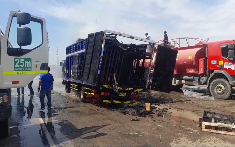 Asimismo, el tránsito vehicular en la Panamericana Norte estuvo restringido en ambos sentidos. Hubo cuantiosas pérdidas de mercadería y la carrocería de madera del camión casi se consumió en su totalidad.