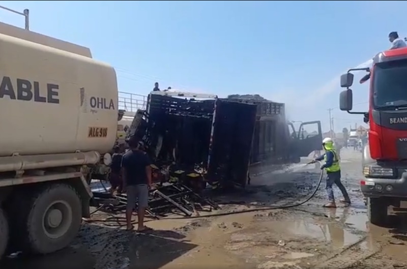 Está tarde un camión de carga se incendio cuando transitaba por el km 295 de la Panamericana Norte, a la altura del ex grifo Meza, en la provincia de Huarmey.