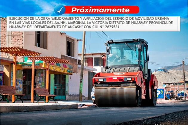 En Huarmey se ejecutará el proyecto de mejoramiento y ampliación del servicio de movilidad urbana en el A.H. Marginal La Victoria. La obra, valorizada en más de S/ 21 millones, tiene un plazo de 365 días calendario.