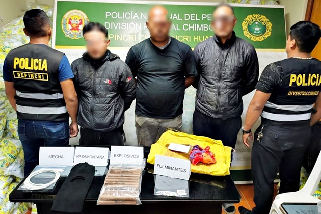Personal policial del Área de Investigación Criminal (Areincri-Huarmey) intervino a tres personas presuntos integrantes de la banda criminal “Los Temerarios de Huarmey”, quienes estarían implicados en la presunta comisión del delito contra la Seguridad Pública – Peligro Común, en la modalidad de Fabricación, Suministro o Tenencia de Materiales Peligrosos. La intervención policial se produjo en un campamento minero de Barbacay, ubicado en el Valle Huarmey, provincia de Huarmey.
