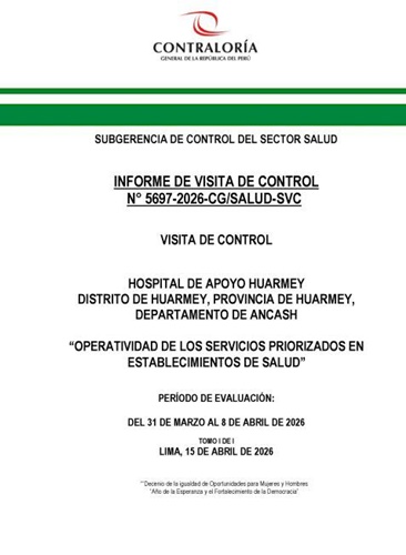 La Contraloría ha publicado un informe de control sobre la operatividad de los servicios en el Hospital de Apoyo Huarmey, correspondiente al periodo del 31 de marzo al 8 de abril de 2026. Este informe, elaborado por la Subgerencia de Control del Sector Salud, identifica 11 situaciones adversas que afectan la calidad y continuidad de los servicios de salud.