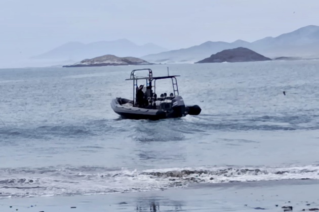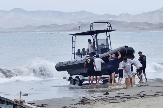 Luego de haber pasado meses de haber sido donada la embarcación tipo Zodiac a la Capitanía de Puerto Huarmey, está tarde personal de la Marina de Guerra del Perú, de la Capitanía de Puerto de Huarmey, echaron al mar la nave que fue obsequiado para el cuidado del litoral huarmeyano.