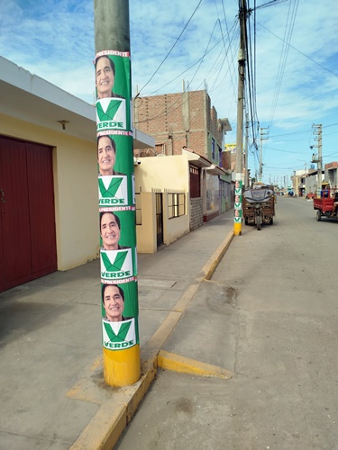 De igual forma, los candidatos a presidente del al República, Álex Gonzales Castillo y a diputado por Áncash, el exvacado gobernador regional, Enrique Vargas Barnechea, colocaron posteras y afiches en una gran cantidad de postes de propiedad de Hidrandidna, en varias calles de ingreso a la ciudad de Huarmey.