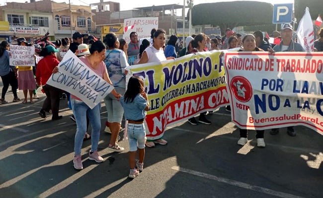 “¡El pueblo unido, jamás será vencido!”, fue una de las arengas que se escuchó la tarde de hoy, en la marcha pacífica por la para concientizar a la población y exigir a las autoridades nacionales a ejecutar un Plan de Emergencia Ambiental que contemple medidas para reducir el alto índice de contaminación con arsénico en la población huarmeyana.