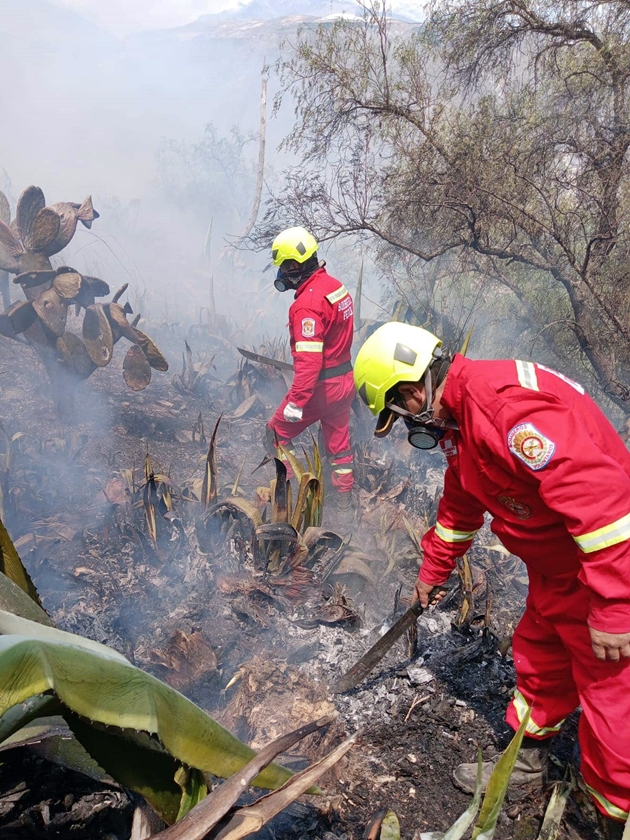 El Centro de Operaciones de Emergencia Regional (COER) informó que tres bomberos resultaron afectados tras inhalar humo producto de los incendios forestales en el distrito ancashino de Mato, provincia de Huaylas.