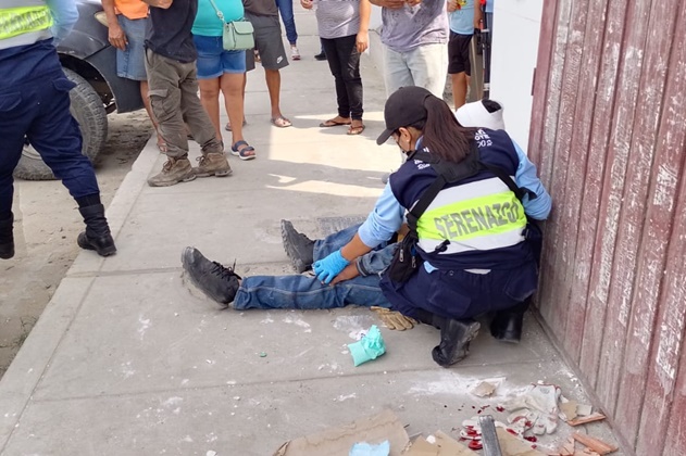 Agentes de Seguridad Ciudadana, junto a su paramédico, llegaron a la Mz. H lote 16 para socorrer a la víctima que yacía en posición decúbito dorsal, sin poder movilizarse.