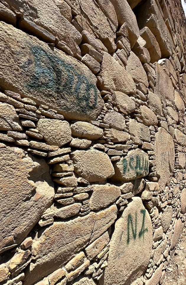 Durante su recorrido, las autoridades identificaron nuevos atentados al patrimonio del centro Pashas, como pintas recientes con esmalte, así como desperdicios y hasta extraños rituales, que vienen causando un mayor deterioro del Complejo Arqueológico.