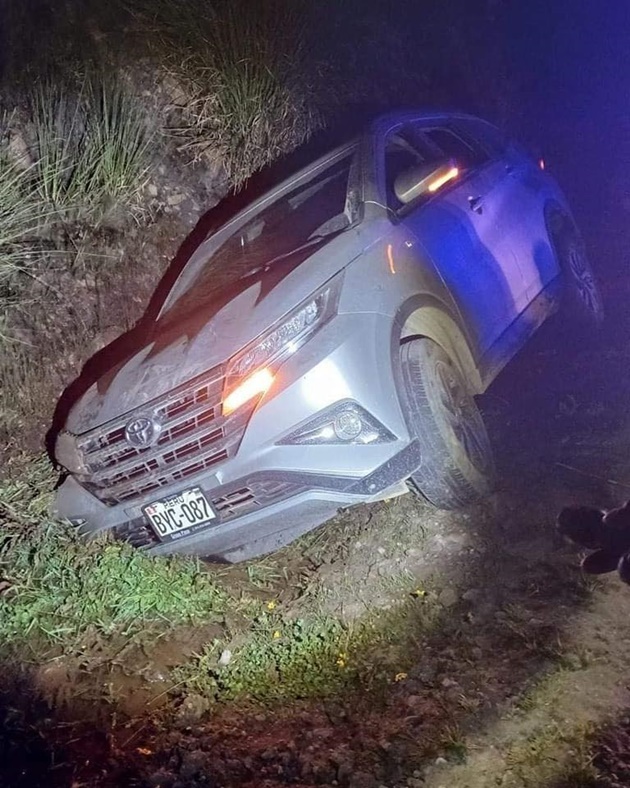 En la madrugada del viernes, una camioneta cerrada de color gris plateado, conducida por Juan Francisco Mendoza y que se dirigía de Huaraz a Lima, se despistó en el cruce a Pampas Chico, ubicado en la vía Catac – Conococha, en la provincia de Recuay.