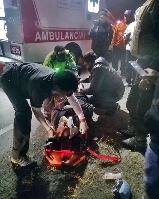 Producto del accidente, el conductor del vehículo menor resultó gravemente herido tendido en el pavimento. Al lugar llegaron los paramédicos de salud para darle atención primaria, para luego trasladarlo en ambulancia hacia el hospital de Recuay para recibir atención médica.