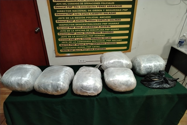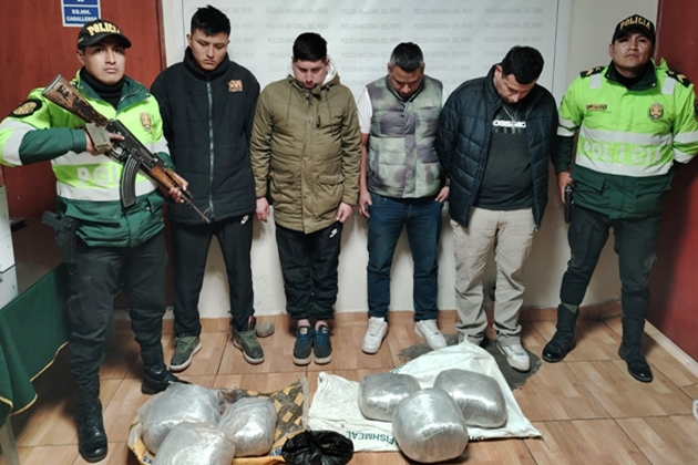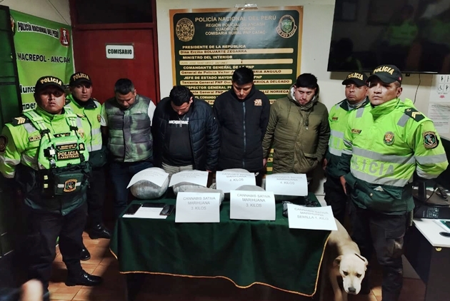 Tras la intervención, los cuatro sujetos fueron trasladados a la comisaría de Catac, donde quedaron detenidos por la presunta comisión del delito de tráfico ilícito de drogas y banda criminal.