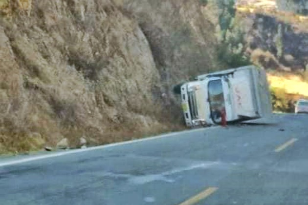 Un nuevo accidente de carretera se produjo esta mañana tras el despiste y volcadura de un camioneta furgón que transportaba productos lácteos, felizmente no hubo daños personales que lamentar. El hecho se produjo a las 9:50 am en el sector de Mashuan de la vía que conecta Catac – Huaraz en la provincia de Recuay.