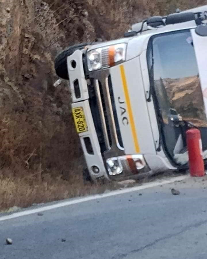 Según se conoció la camioneta furgón  de marca JAC de color blanco y placa de rodaje AXR-820 transitaba en sentido sur a norte cuando en dicho sector el conductor de la unidad, sufrió un despiste y termino volcado de lado en la cuneta de la vía.